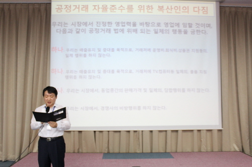 공정거래 자율준수 선포식에서는 진정한 영업력을 바탕으로 영업에 임하며, 매출유지 목적으로 거래처에 운영비, 회식비, 상품권 지원 등 금전·물품 지원을 하지 않겠다고 다짐했다.