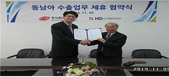 (주)씨트리(대표이사 김완주)가 지난 9월 초 비천연아미노산 및 펩타이드에 대한 일본수출계약 체결한 데 이어 5일 캄보디아 의약품 유통 수위 업체인 IM사의 한국 대행사 (주)에이치디컴퍼니(대표이사 이창훈)와 완제의약품 수출 업무 협약식을 체결했다.