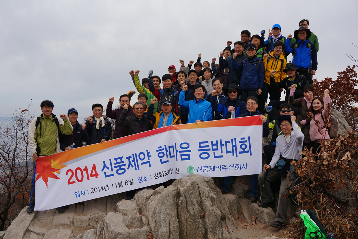 신풍제약(주)(대표이사 유제만)은 지난 8일 강화도 마니산에서 ‘2014 신풍제약 한마음 등반대회’를 개최했다.
