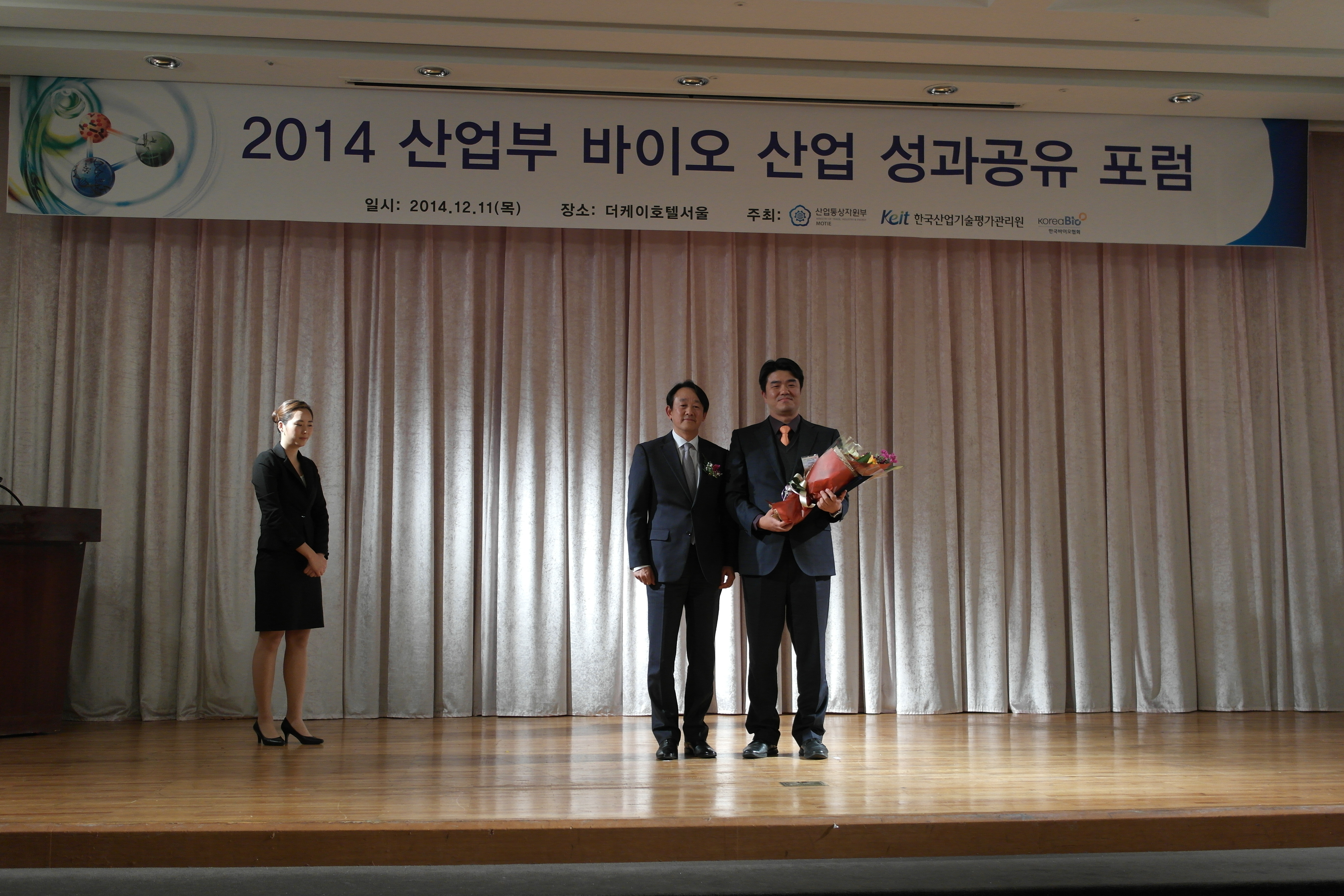 산업통산자원부가 주최하고 한국바이오협회와 한국산업기술평가관리원이 주관한 ‘2014 바이오산업 성과 공유 포럼’에는 바이오분야 전문가와 관련 업계 관계자 200여 명이 참석했으며, 우수 기업 및 우수 연구개발자 시상과 함께 바이오 분야 기술사업화 촉진과 동반성장 전략이 논의됐다.