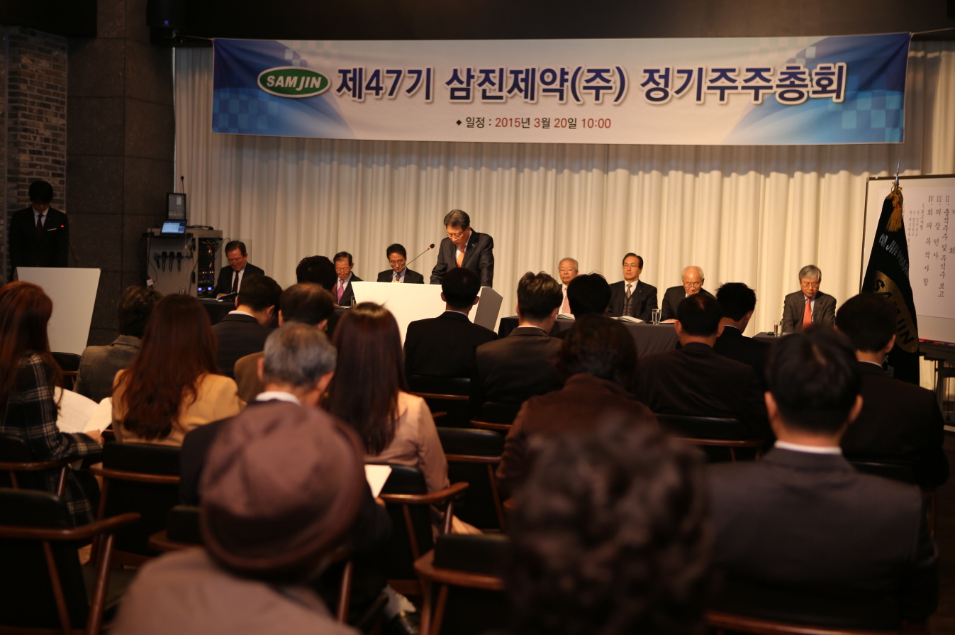 삼진제약(주) 이성우 대표이사는“지난해 어려운 여건에서도 재도약의 기반을 마련하고 성장세를 회복한 것은 함께 뛰어준 임직원, 주주들의 성원 덕분이다”며“2015년에도 인재경영 ․ 내실경영을 통해 반드시 매출 목표를 달성하고 수익성을 확대하기 위해 힘쓰겠다”고 밝혔다.