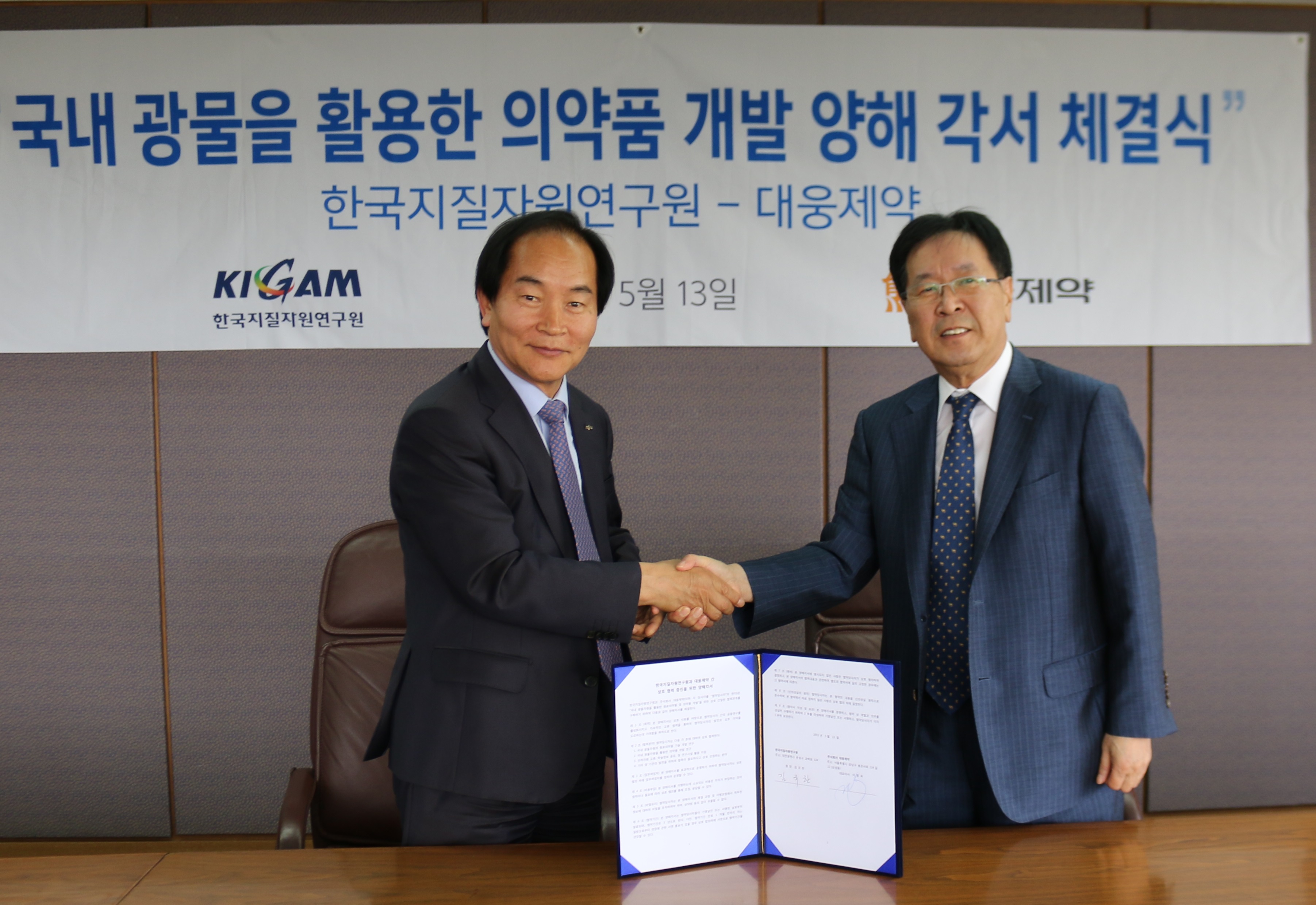 ㈜대웅제약(대표 이종욱)은 13일 강남구 삼성동에 위치한 대웅제약 본사에서 한국지질자원연구원(원장 김규한)과 광물자원을 활용한 의약품 개발 협력을 위한 양해각서(MOU)를 체결했다고 밝혔다.