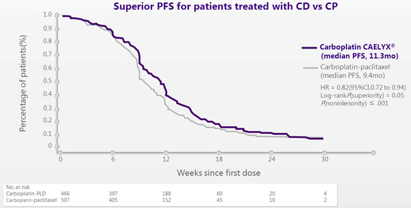 CALYPSO Study 결과, 케릭스주는 난소암 환자의 생존기간을 연장하고 난소암 환자가 겪는 탈모 및 감각 신경 이상과 같은 이상 반응이 적어 난소암 환자의 삶의 질에 기여하는 것으로 나타났다.