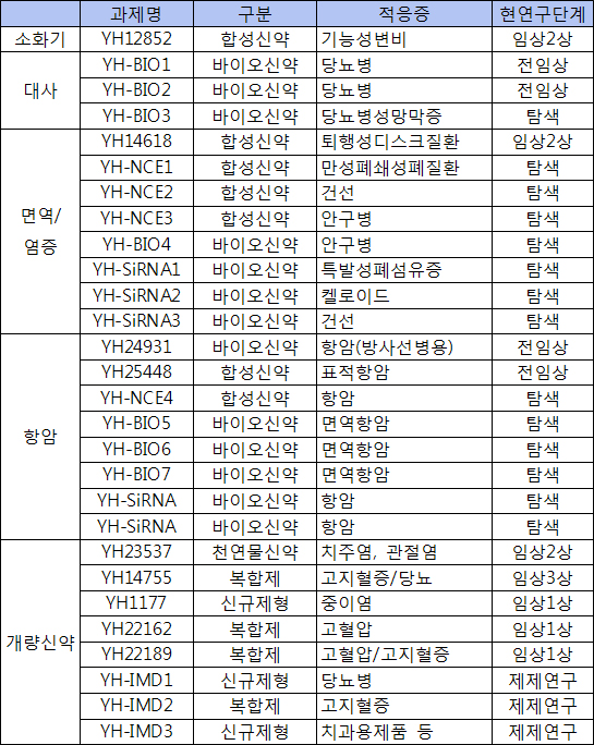 특히 퇴행성디스크 질환치료제(YH14618)가 해외 제약사로부터 높은 관심을 받고 있으며, 임상2상 결과가 도출되는 2016년 상반기 가시적 기술이전 성과를 기대하고 있습니다.