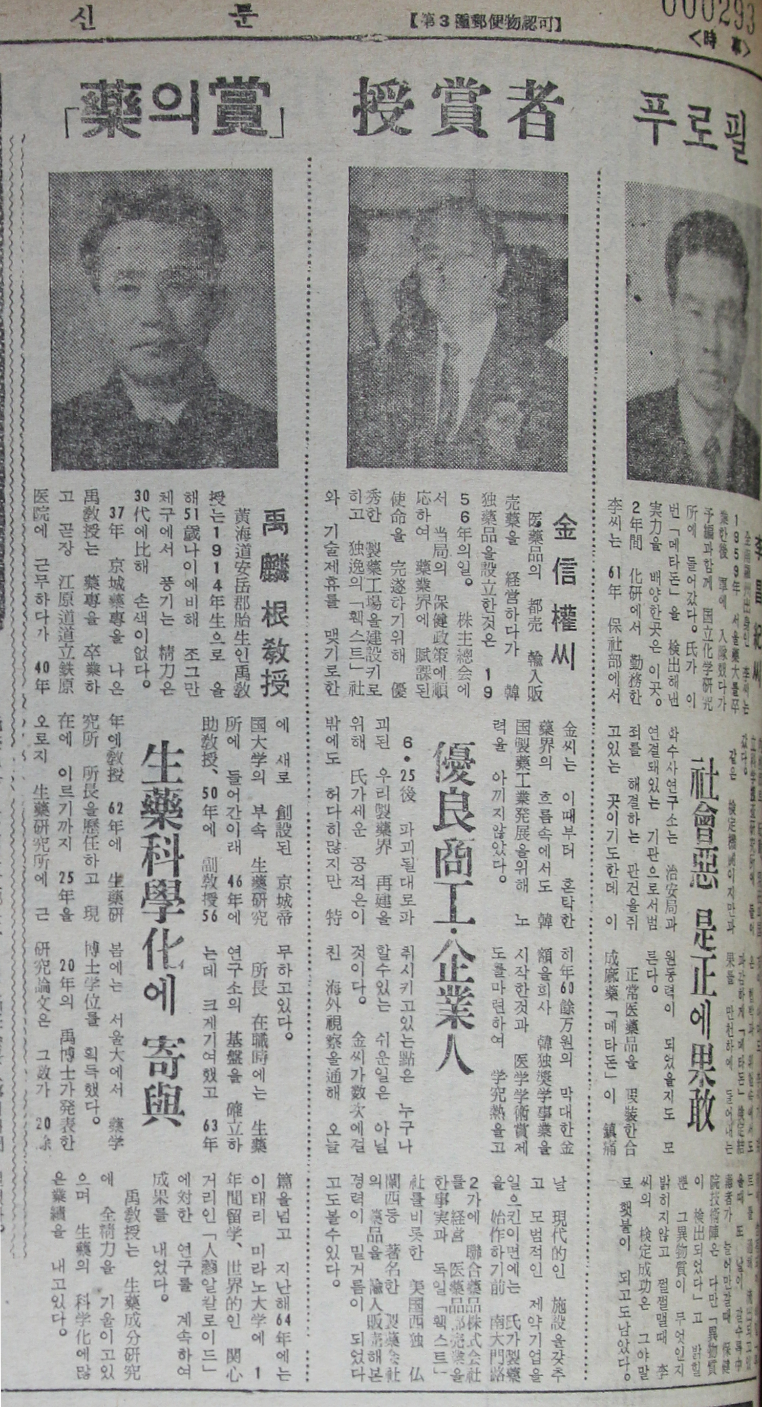 1940년 19살 때 만주국(滿洲國) 약종상 시험에 한국인 최연소로 합격했을 뿐 아니라 한국전쟁 당시 부산에서 개점한 점포가 국제시장 약품거리의 효시가 된 일 등은 그를 제약업계의 대표적인 1세대 인사로 꼽는 데 부족함이 없어 보이게 한다.