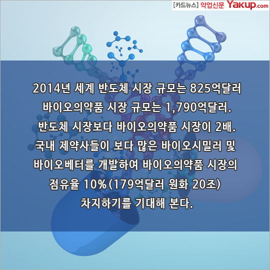 2014년 세계 반도체 시장규모는 825억 달러, 바이오의약품 시장규모는 1,790억 달러.