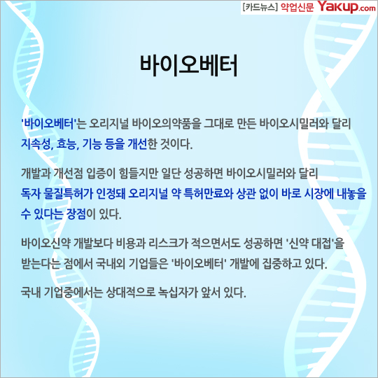 '바이오베터'는 오리지널 바이오의약품을 그대로 만든 바이오시밀러 달리 지속성, 효능, 기능 등을 개선한 것이다.