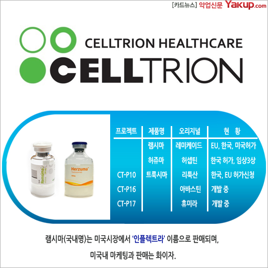 램시마(국내명)는 미국시장에서 '인플렉트라' 이름으로 판매되며, 미국내 마케팅과 판매는 화이자.