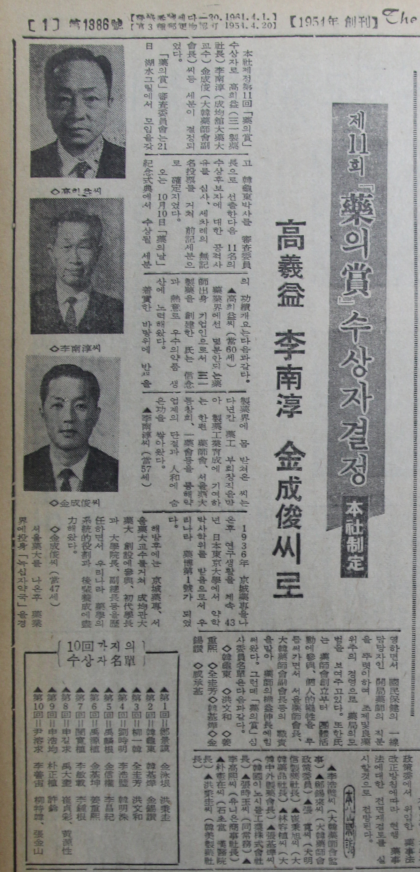 삼일제약은 창립 첫해에 국내 최초의 효모제제 ‘에비오제’를 생산했으며, 한국전쟁 직후인 1953년 회사를 용산구 한강로로 이전했다. 제약업에 대한 고희익 사장의 열정이 오롯이 투영된 듯한 회사상표인 횃불표가 정해진 것은 1966년의 일이었다.