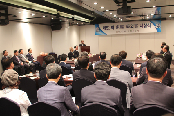 본지 함용헌 회장은 이날 시상식에서 인사말을 통해 “이번에 제52회 동암 약의상을 수상하는 김동연 이사장은 우리나라 제약산업 발전과 신약 연구개발에 큰 공을 세운 분으로 축하와 경의를 표한다”고 말했다.
