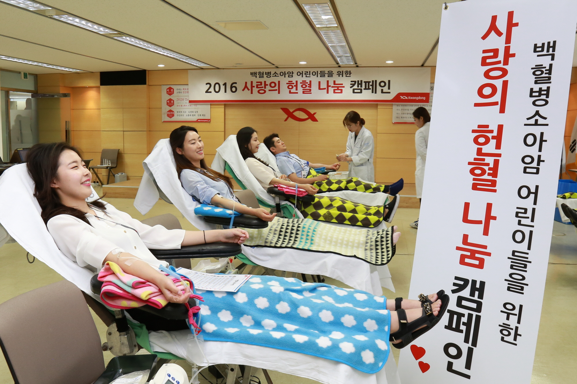 중앙대학교병원 헌혈센터와 함께 진행한 이날 행사는 혈액 부족으로 치료에 어려움을 겪고 있는 백혈병소아암 어린이들을 돕기 위해 마련되어, 광동제약 임직원이 소매를 걷어 부치며 이웃사랑 실천에 참여했다.