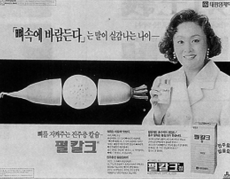 90년대 중반 태평양제약(현재 한독에 양도)이 발매한 펄칼크는 조개껍데기 등에서 추출한 천연원료로 만든 칼슘 보충제이다, 발매와 더불어 칼슘이 부족한 주부들에게 요긴한 의약품으로 대중적 사랑을 받은 제품이다.