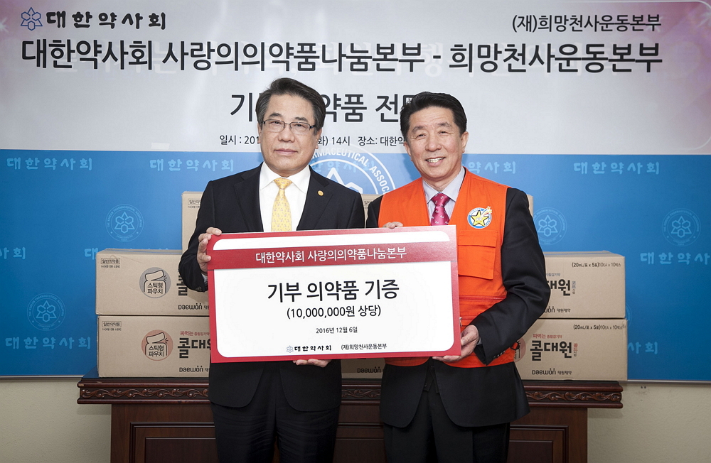 이번 기부활동은 대원제약과 대한약사회가 함께하는 ‘사랑나눔 응원 캠페인’의 일환으로서 희망천사운동본부를 포함한 약 20여개 단체에 콜대원 제품 총 2만개가 전달된다.