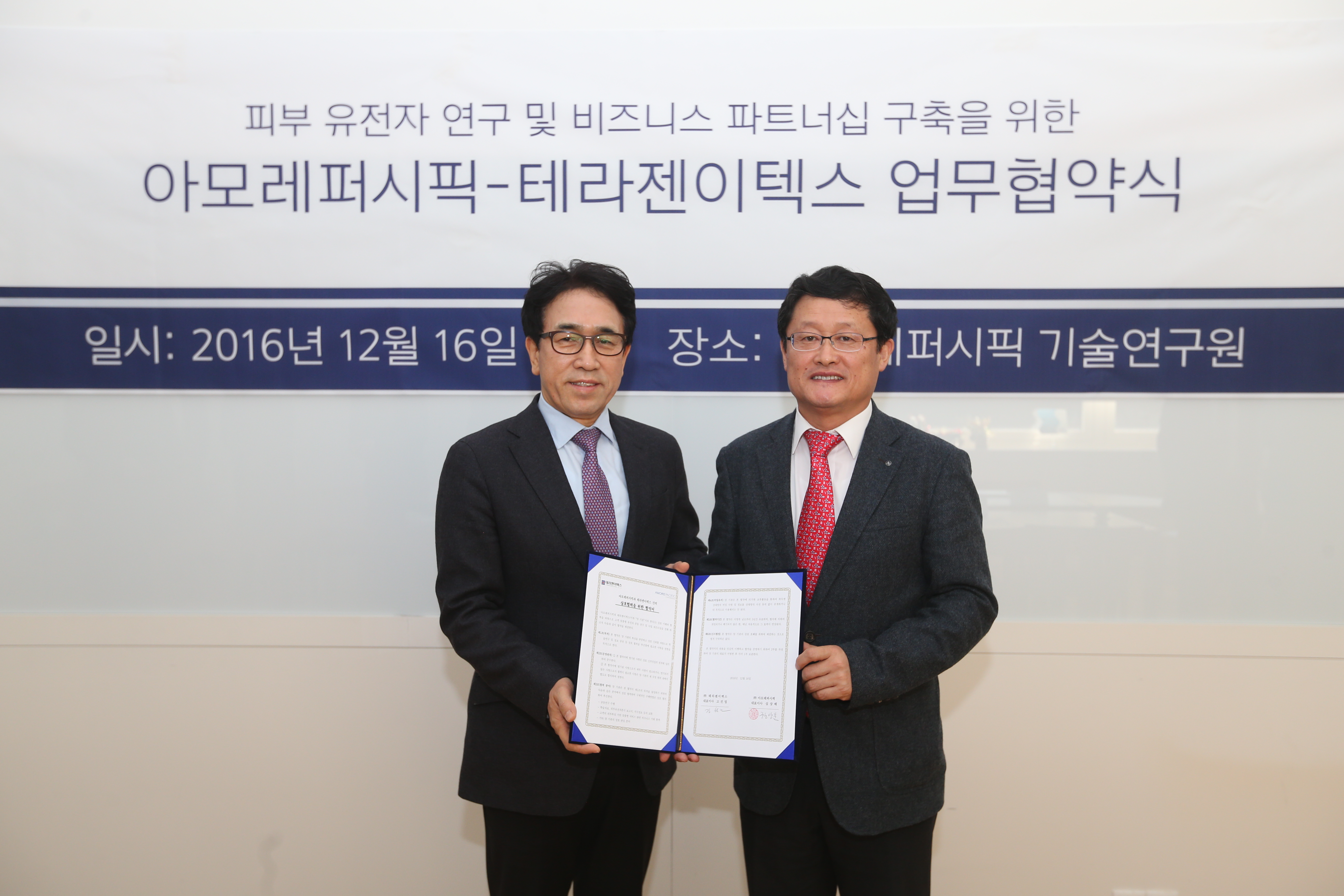테라젠이텍스 바이오연구소 김성진 부회장은 “아모레퍼시픽과의 연구를 통해 유전적 특성에 맞는 맞춤형 피부관리 시대를 선도할 수 있을 것”이라고 말하며, “앞으로 피부 유전자뿐만 아니라 더 많은 분야로 협력이 확대되기를 바란다” 고 전했다.