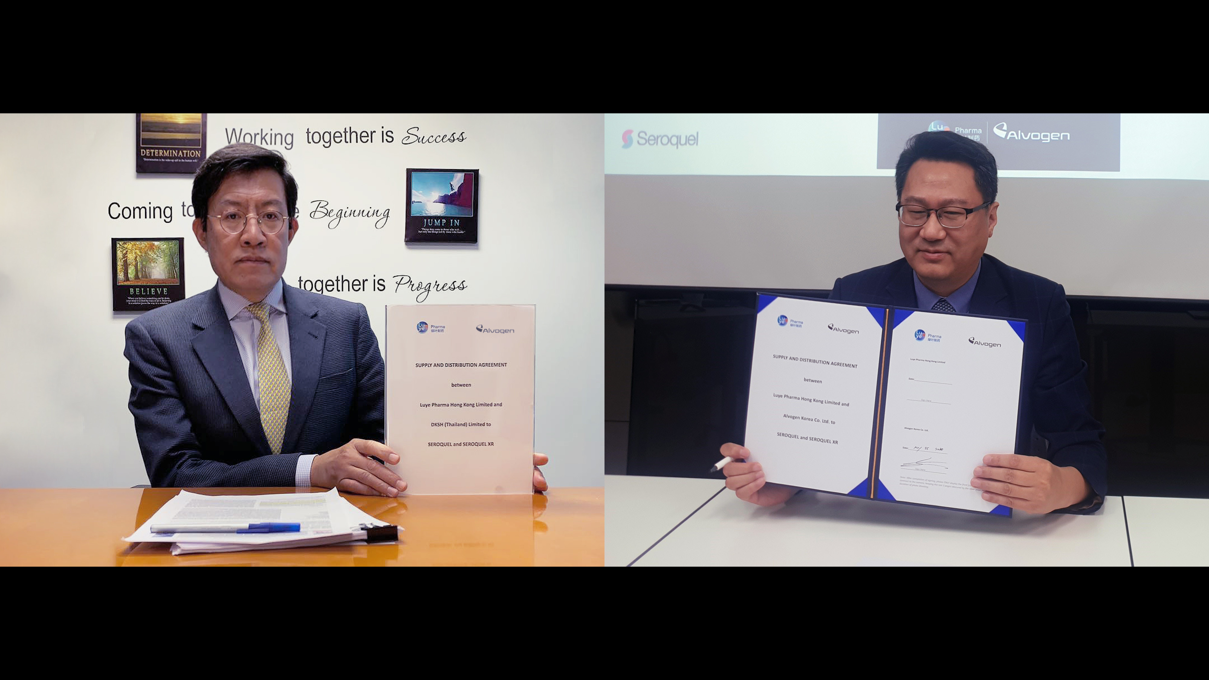 알보젠코리아(대표이사 이준수)가 루예제약(Luye Pharma Group, 대표 Yehong Zhang)과 ‘We Care About Mental Health’ 이니셔티브의 일환으로 지난 25일 조현병 및 양극성 장애 치료제 ‘쎄로켈 정®(쿠에티아핀 푸마르산염 신속방출제)’과 ‘쎄로켈 서방정®(쿠에티아핀 푸마르산염, 서방제)’에 대한 국내 독점 유통 및 마케팅 권리 계약 체결식을 진행했다.