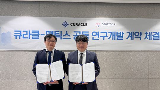 큐라클(대표이사 유재현)이 항체 개발 전문기업 맵틱스(대표이사 이남경)와 항체 치료제 공동 연구개발을 위한 계약을 체결했다고 2일 밝혔다.