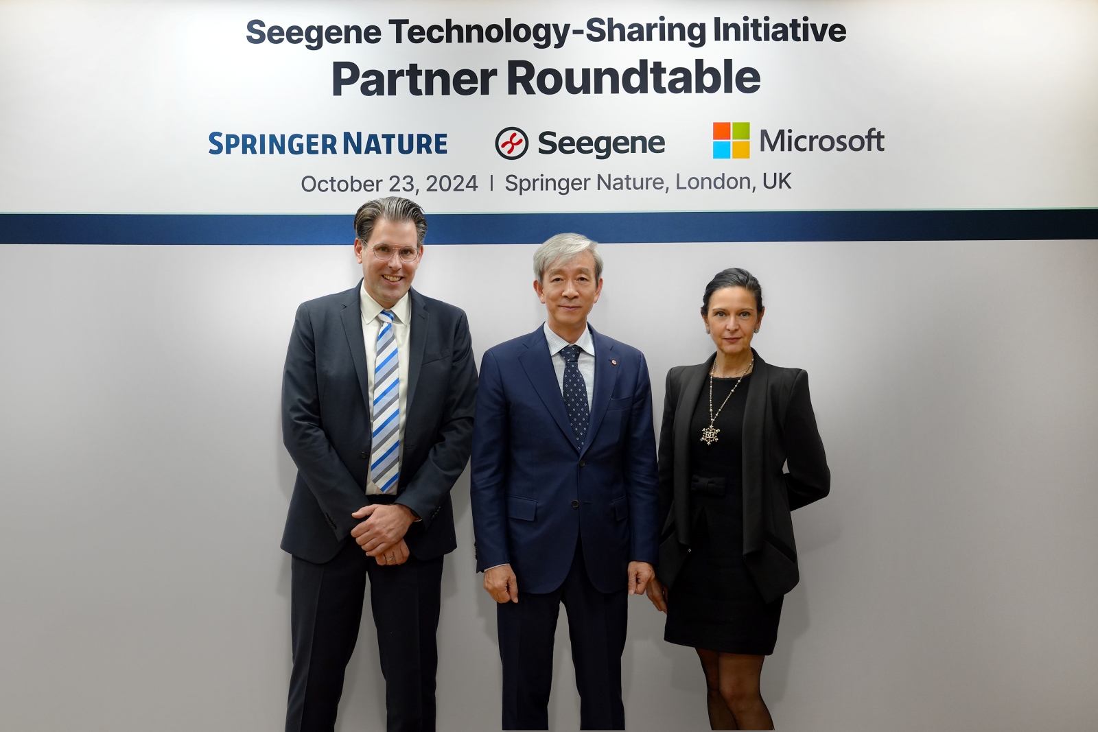 씨젠은 “23일(현지시간) 각 사를 대표하는 경영진이 영국 런던에서 열린 첫 기술공유사업 파트너 라운드테이블(Technology-Sharing Initiative Partner Round Table)에 참석해 그동안의 진행 상황을 공유하고 다양한 협력 방안에 대해 공감을 표했다”고 24일 밝혔다. 이 자리에는 천종윤 씨젠 대표, 마크 스페뇰(Marc Spenlé) 스프링거 네이처 최고운영책임자(COO), 스티븐 인치쿰(Steven Inchcoombe) 스프링거 네이처 연구부문 사장, 엘레나 본피그리올리(Elena Bonfiglioli) 마이크로소프트 글로벌 헬스 및 생명과학부문 총괄이 참석했다.