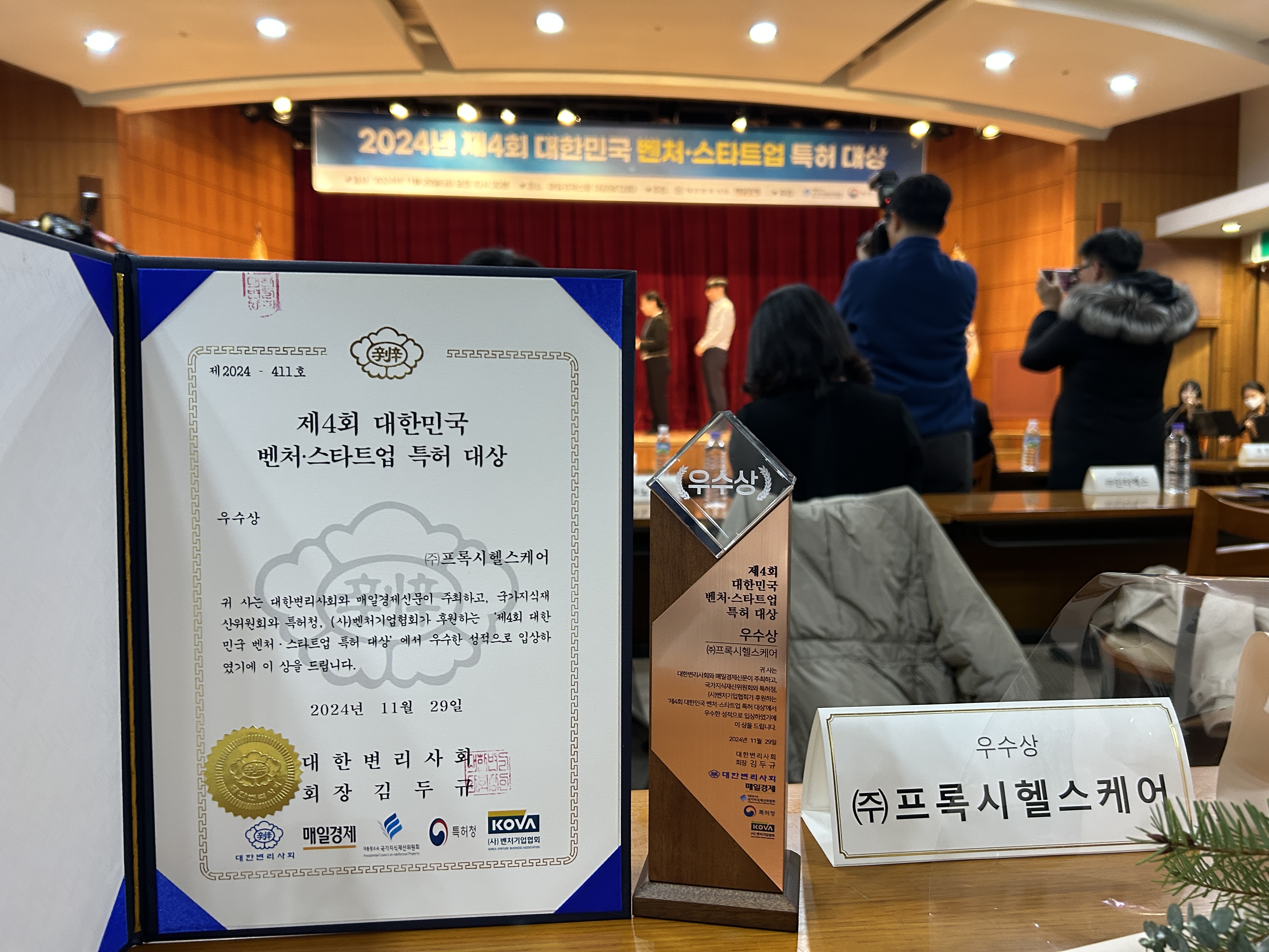생체전류 원천기술 보유 기업 프록시헬스케어가 대한변리사회와 매일경제 신문이 주최하고, 국가 지식재산위원회와 특허청, 벤처기업협회가 후원하는 제4회 대한민국 벤처 스타트업 특허 대상을 수상했다.