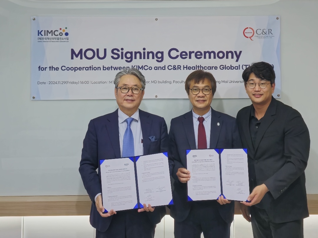 씨엔알리서치(윤문태 대표) 태국 법인인 ‘C&R Healthcare Global(Thailand) Co., Ltd.(대표이사 Prapan Jutavijittum, 김윤호, 이하 C&R Thailand)’와 ‘한국혁신의약품컨소시엄재단(대표 허경화, 이하 KIMCo재단)’은 ‘ASEAN 지역에서의 기술기반 개량의약품(TBM) 개발’을 목적으로 업무 협약을 체결했다고 4일 밝혔다.