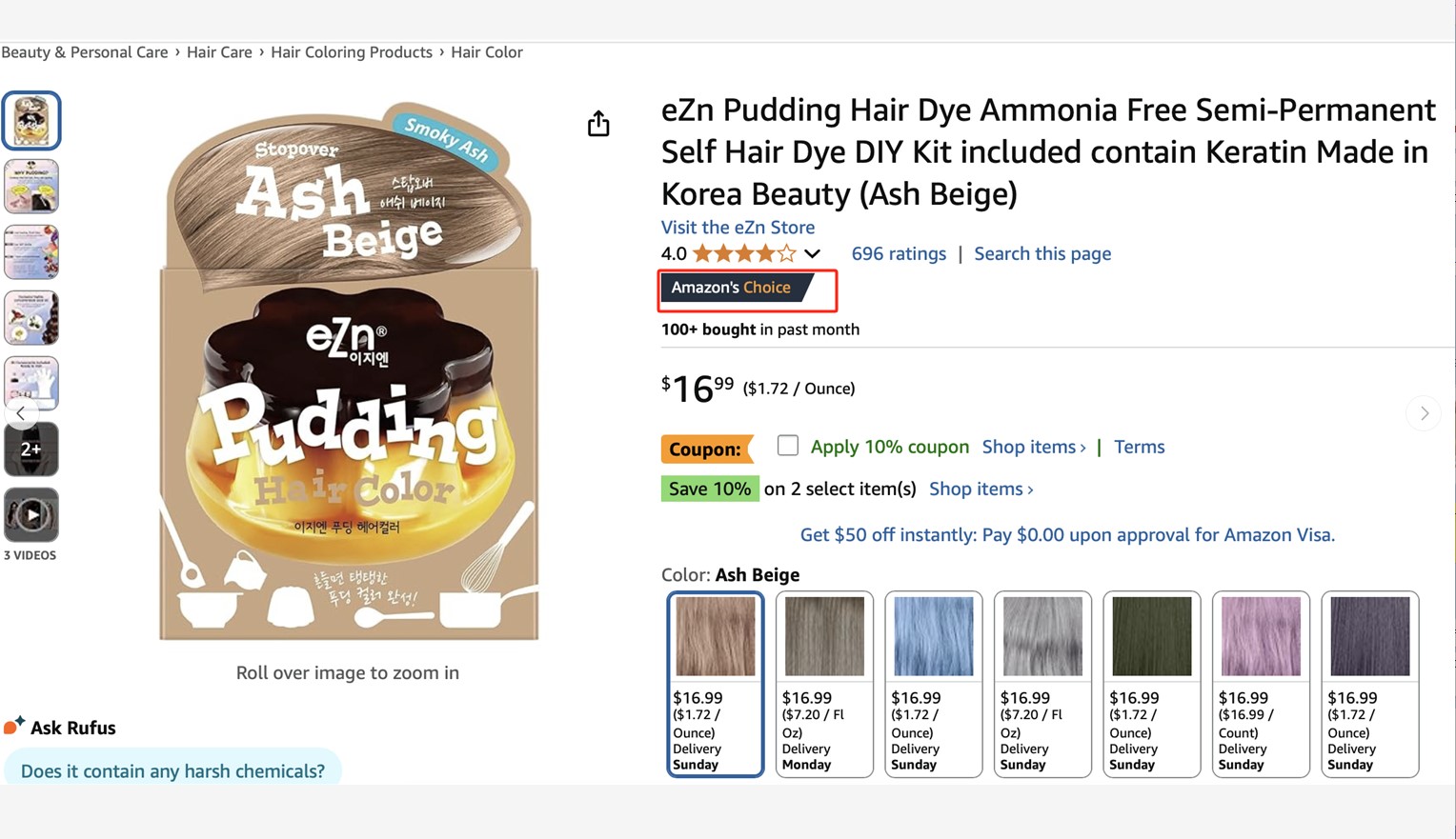이번에 '아마존 오버롤 픽’으로 선정된 이지엔 '푸딩 헤어컬러'는 쫀쫀하고 탱탱한 푸딩 타입 제형과 매 시즌별 트렌드를 선도하는 헤어 컬러로 셀프 염색 시장에서 장시간 많은 사랑을 받아온 제품이다. 현재 미국 아마존에서는 탈색을 전제로 하는 염색 컬러가 높은 인기를 얻고 있다. 지난 11월에는 이지엔 '슈퍼리치 크림 블리치' 제품이 아마존 블리치 카테고리에서 28위에 진입했다.