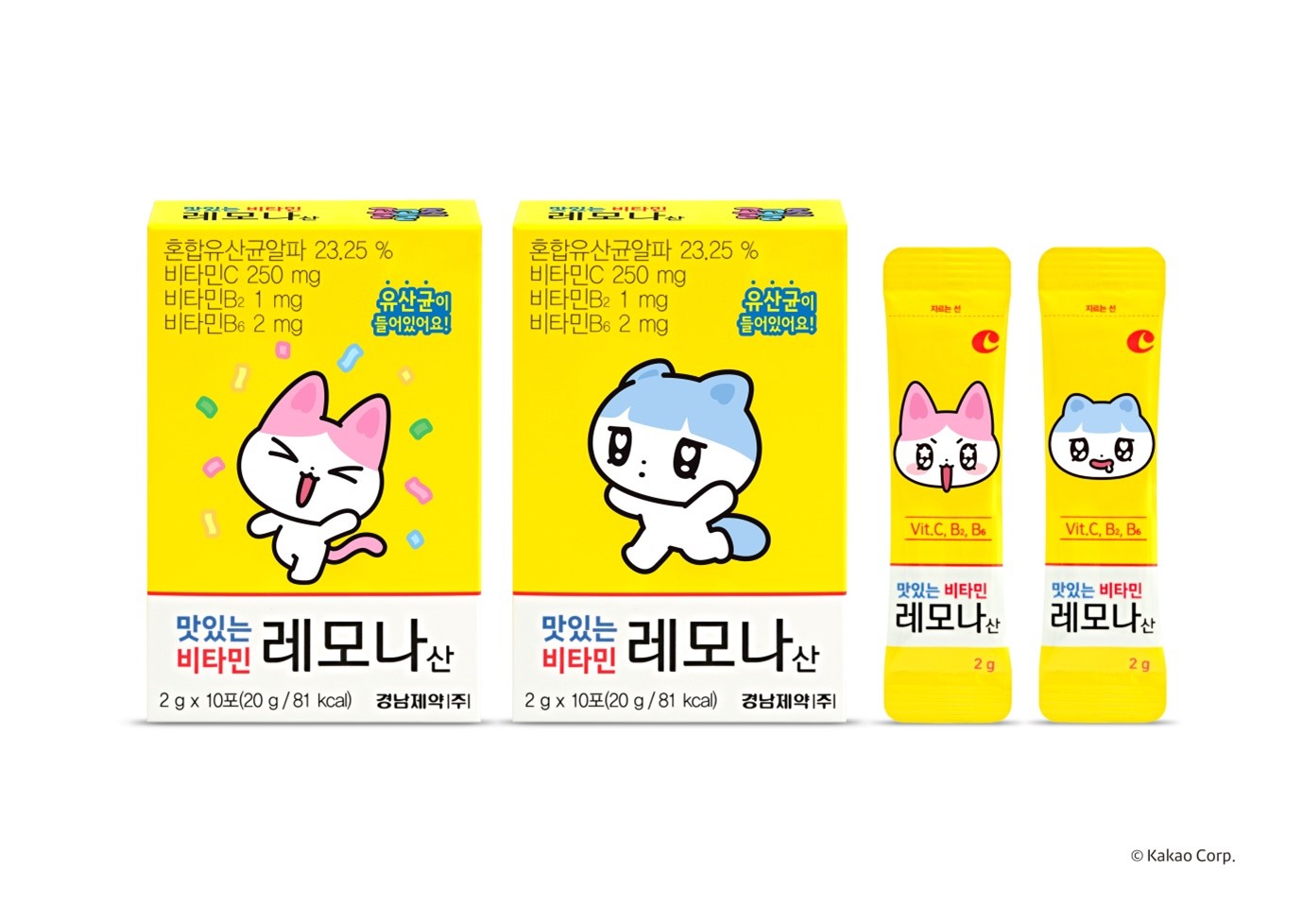 경남제약은 카카오 신규 캐릭터 ‘골골즈’를 적용한 ‘맛있는 비타민 레모나산’을 리뉴얼 패키지로 출시했다고 31일 밝혔다.