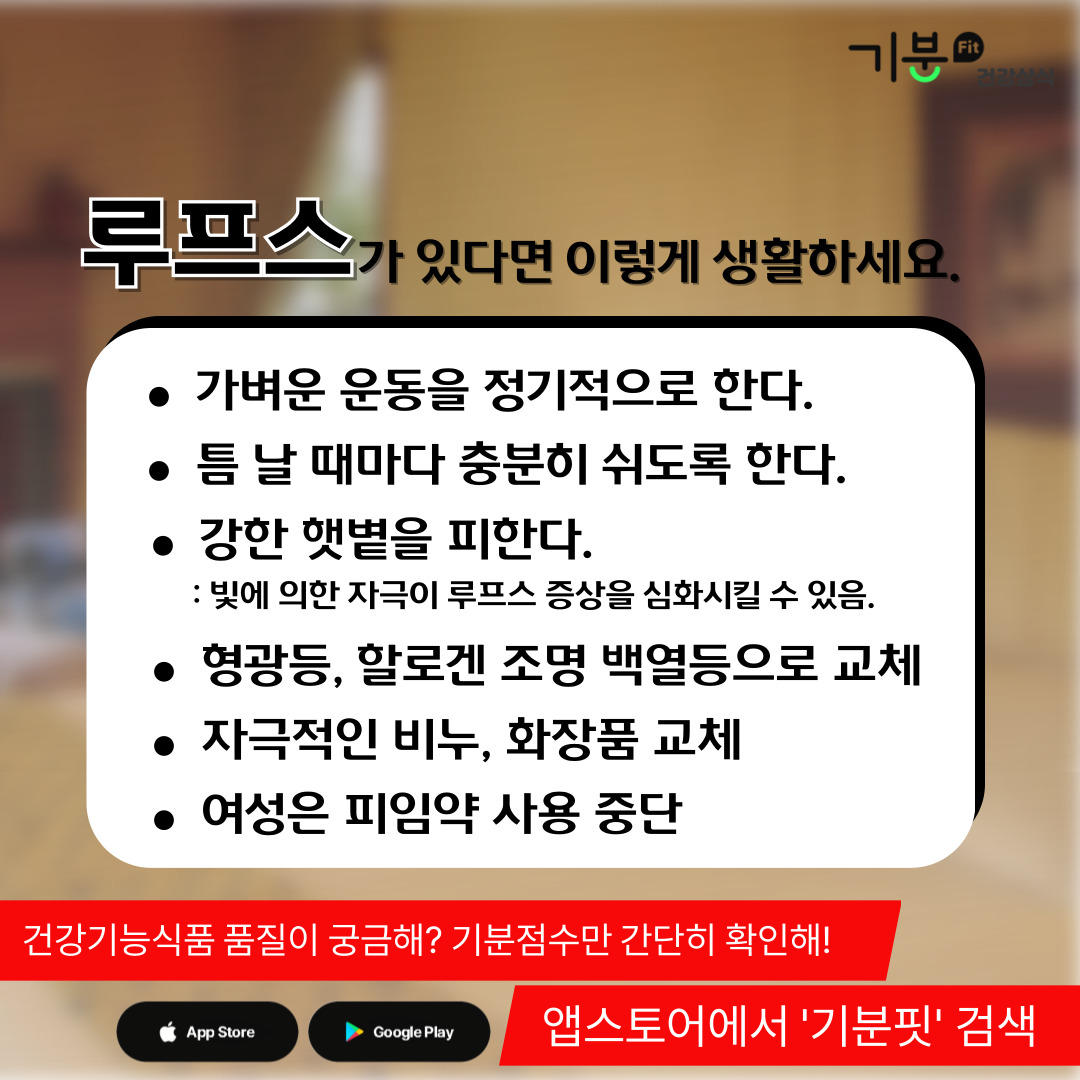 빛에 의한 자극이 루프스 증상을 심화시킬 수 있으므로 강한 햇볕을 피하자.