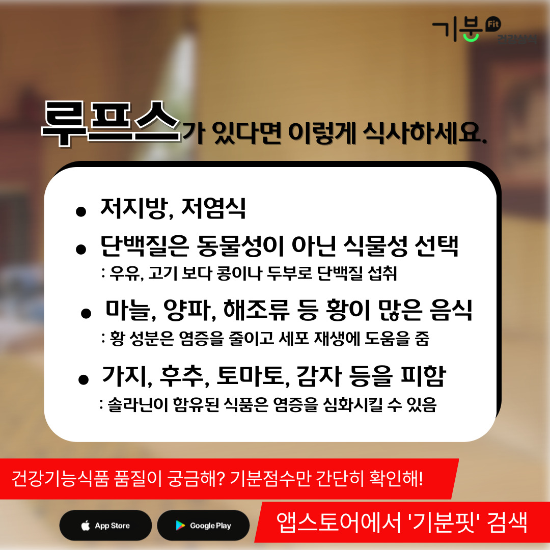 루프스가 의심될 때는 저지방, 저염식을 하는 것이 좋다.