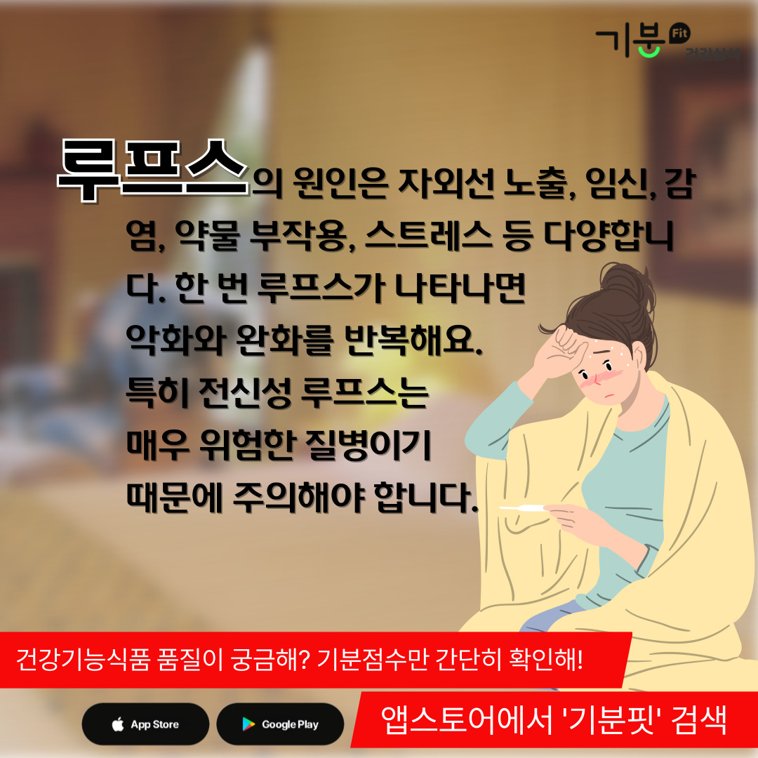 루프스의 원인으로는 자외선 노출, 과로, 임신, 감염, 약물 부작용, 스트레스, 바이러스 등이 꼽힌다.