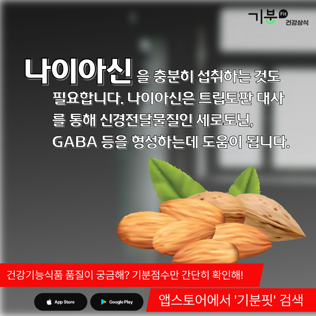 나이아신이 트립토판 대사를 통해 신경전달 물질인 세로토닌을 형성하는데 도움이 된다는 연구들이 있다.