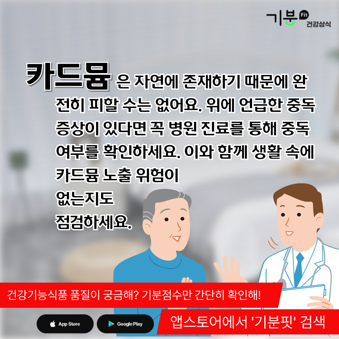 이와함께 생활속에 카드뮴과 접촉할 만한 위험이 있는지 살펴보고 주변 환경을 개선하는 것도 중요하다.