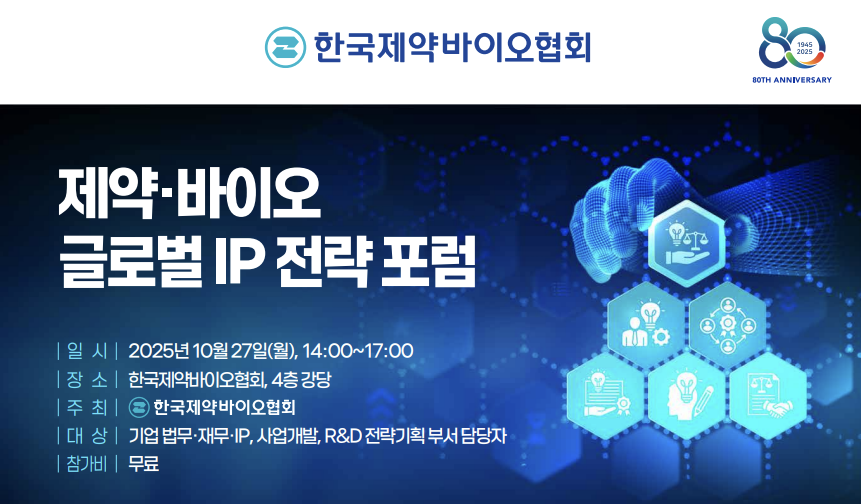 특히 의약품 개발 초기 단계의 IP 전략 수립부터 계약 단계의 실무 쟁점, 분쟁 발생 시 대응 및 자금 조달까지 IP 전주기 관리의 중요성이 커지는 가운데, 이번 포럼은 국내외 사례를 바탕으로 실무적인 해법을 논의하는 자리가 될 것으로 기대된다.
