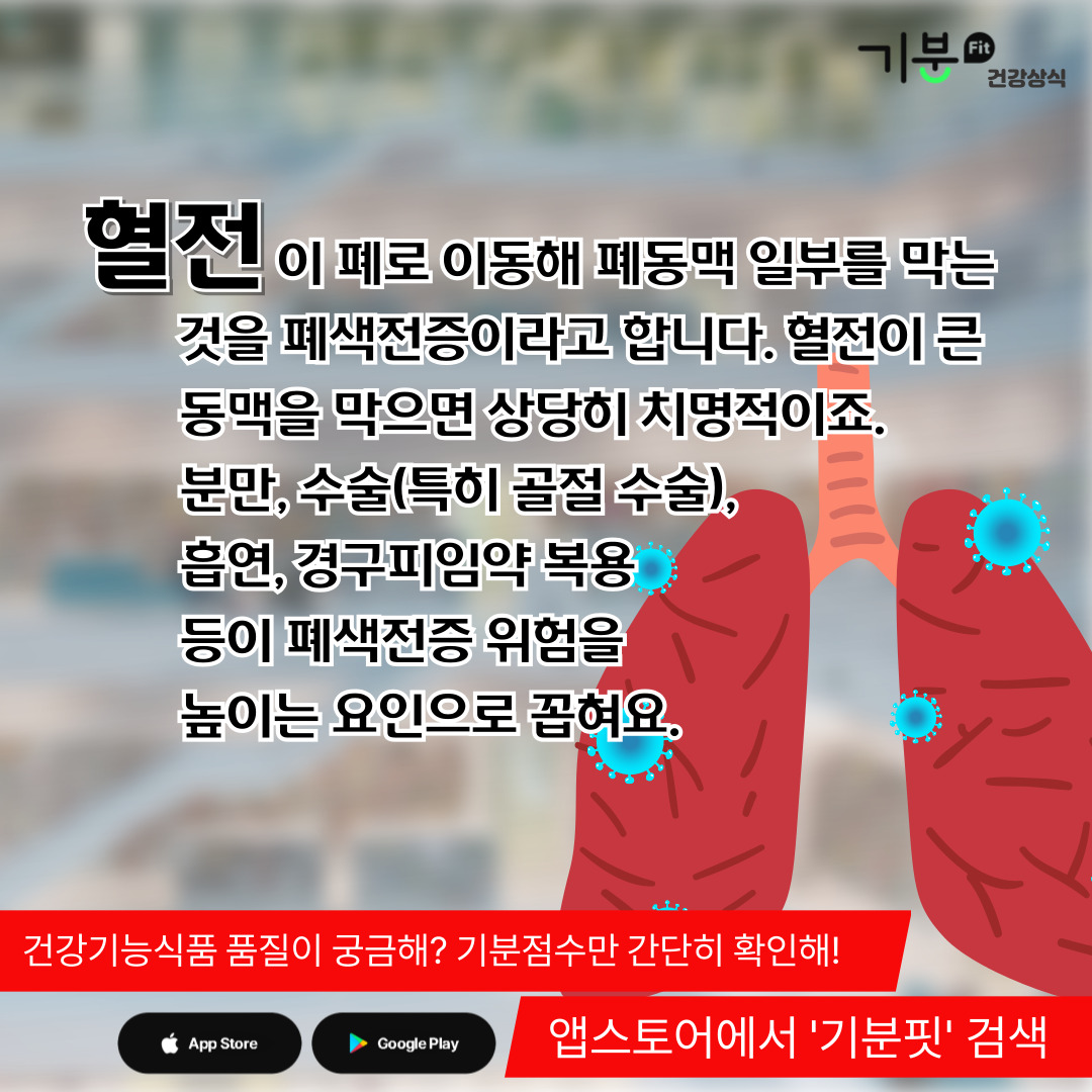 혈전이 폐로 이동해 폐동맥 일부를 막는 것을 폐색전증이라고 한다.