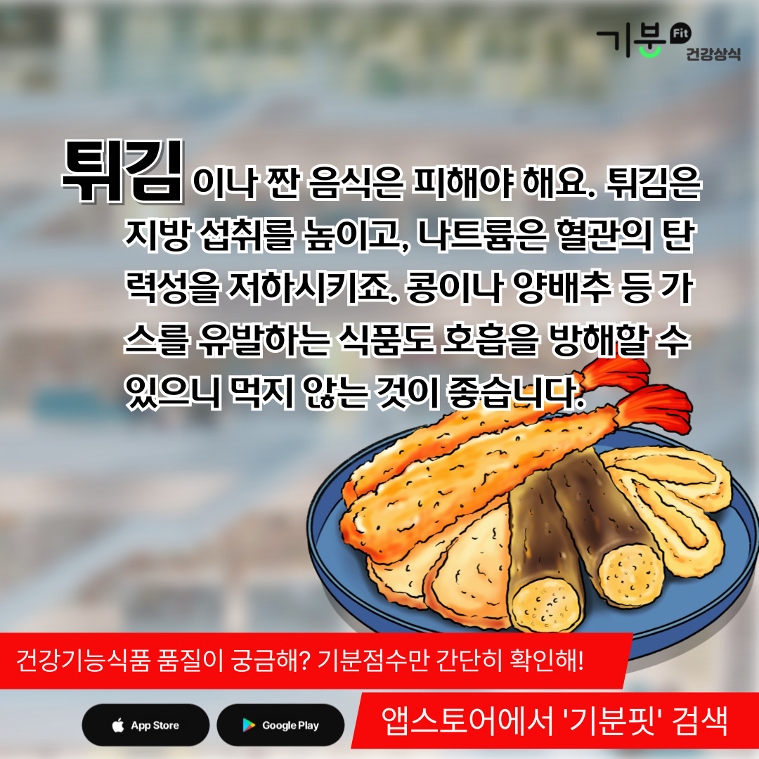 튀긴 음식, 짠 음식은 피해야 한다.