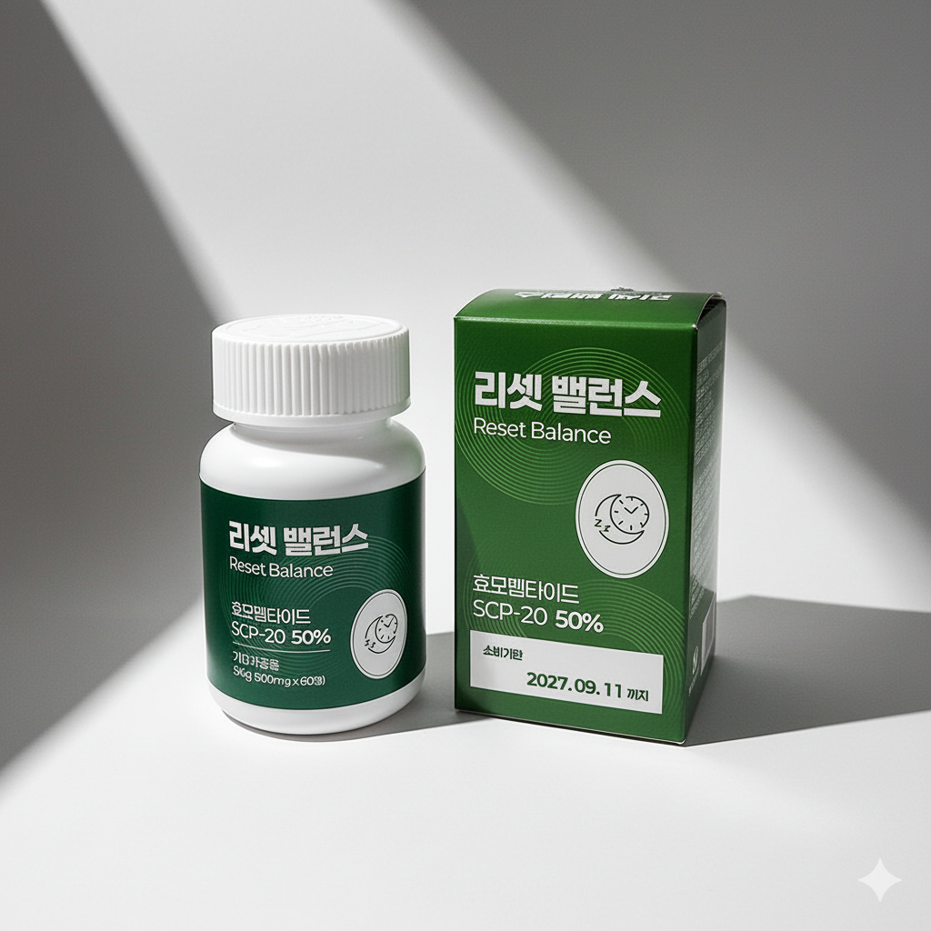리셋 밸런스는 한, 미, 일 3개국 특허 등록된 천연 효모 펩타이드 SCP-20을 주원료로 사용한 제품. 하루 두 알 섭취를 통해 900mg의 효모 펩타이드를 섭취할 수 있도록 설계됐다.