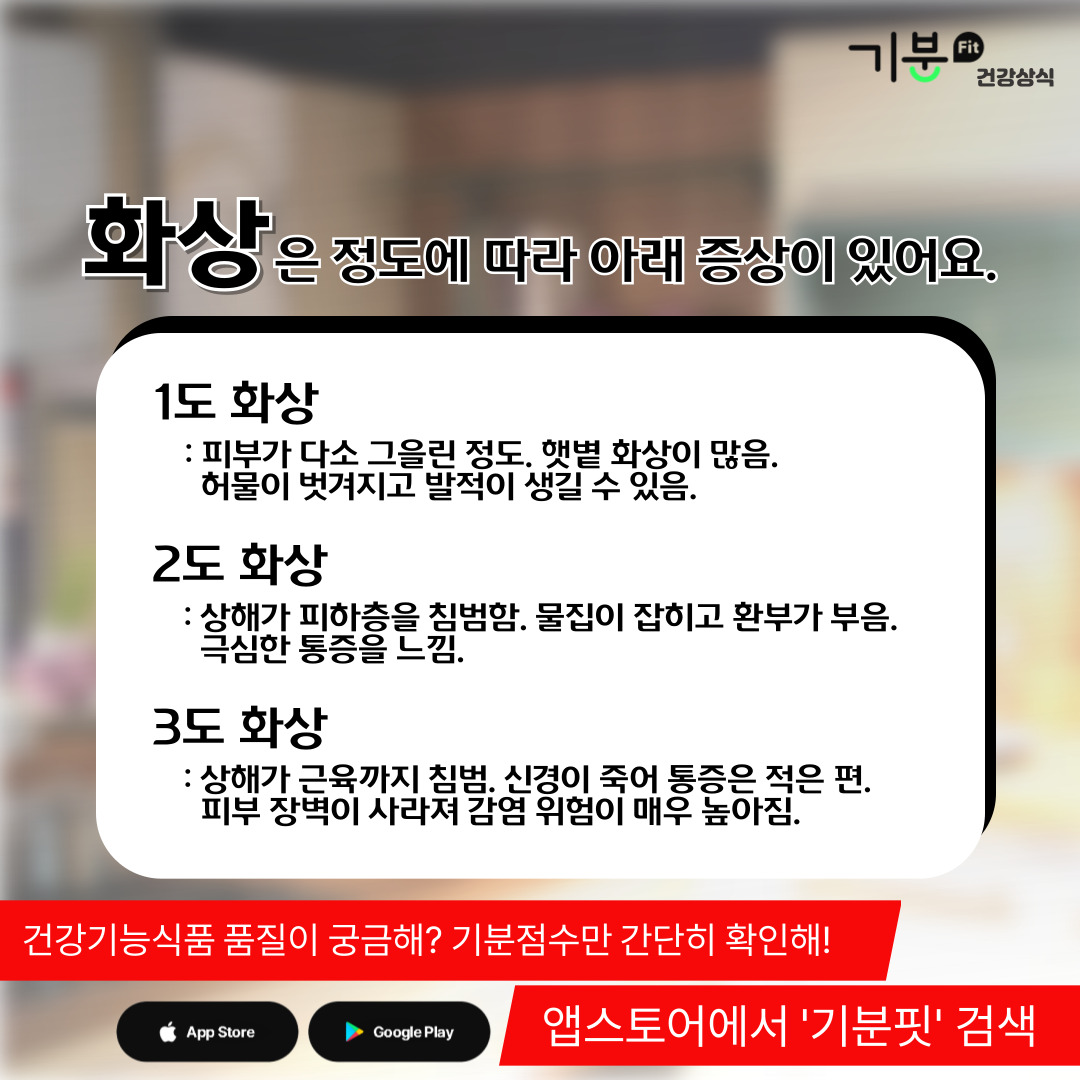 정도에 따라 화상 증상은 조금씩 다르지만, 보통은 피부가 그을리고, 물집이 잡히고, 극심한 통증이 나타나게 된다.