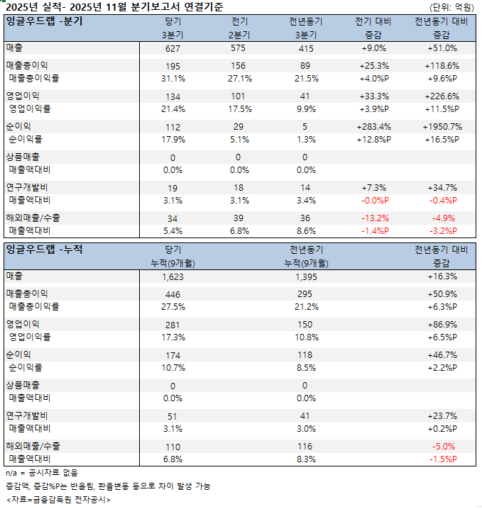 잉글우드랩은 올해 3분기 매출은 물론 영업이익, 순이익이 전기 및 전년동기 대비 크게 늘었다.