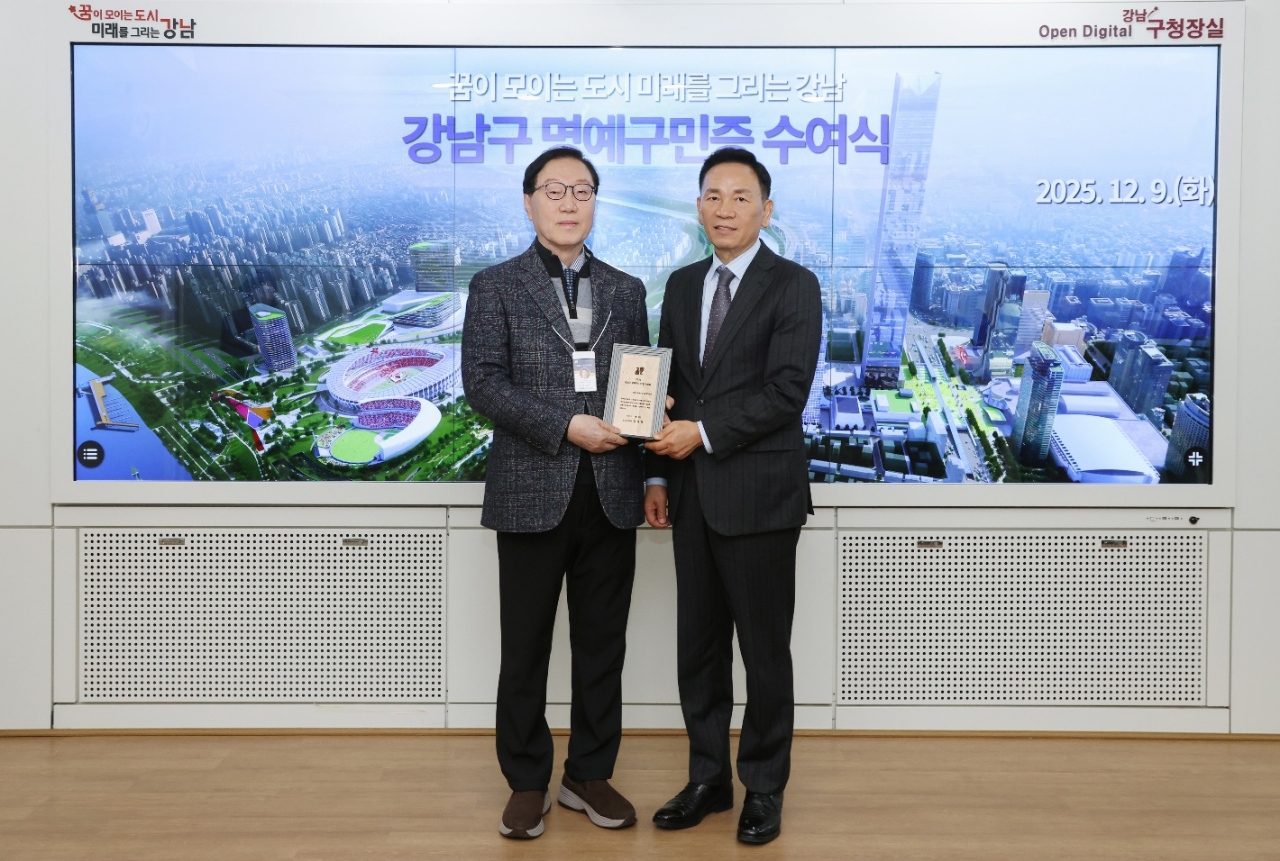 김태식 전 한국유나이티드제약 전무이사가 강남구청으로부터 강남구 명예구민으로 선정돼 지난 9일 명예구민증서와 기념패를 수상했다.