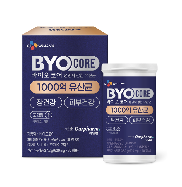 ‘바이오코어 1000억 유산균’은 3종 균주를 조합해 구성된 제품으로, 2013년 국내 최초로 개별인정형을 획득한 CJ웰케어의 핵심 균주 CJLP133와 두 종의 비피도박테리움 균주(lactis, longum)가 사용됐다. 또한 최근 주목받는 원료인 NMN(니코틴아마이드 모노뉴클레오타이드)를 함께 배합했다. CJLP133은 김치 유래 균주로 소장까지 생존하는 안정성과 장·피부 면역 기능성이 과학적으로 검증됐으며, 비피도박테리움 2종은 대장에서의 우수한 정착력·증식력이 특징이다. 비피도박테리움 2종 중 하나인 BI9988은 국내 대표 장수마을 8곳의 노인의 장 속에 사는 균주에서 발굴한 것으로, 장 건강과 배변활동 향상에 도움을 준다.