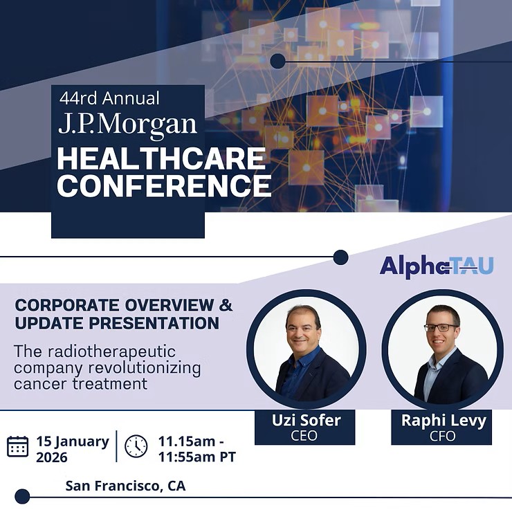알파타우 최고경영자(CEO) 우지 소퍼(Uzi Sofer)와 최고재무책임자(CFO) 라피 레비(Raphi Levy)는 15일 샌프란시스코 웨스틴 세인트 프랜시스에서 연사로 나서 기업의연구개발 성과, 임상 진행 상황, 향후 계획을 설명할 예정이다. 이날 행사에서 기관 투자자들과 1:1 미팅도 진행된다.