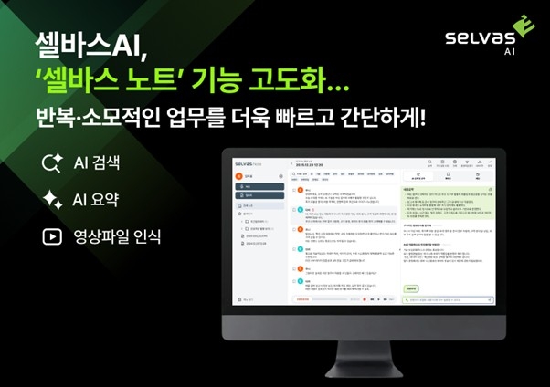 셀바스AI는 AI 음성인식 기술을 기반으로 회의록·조서·보고서 등 업무 문서 작성을 지원하는 ‘셀바스 노트(SELVAS Note)’에 다양한 사용자 편의 기능을 새롭게 추가했다고 19일 밝혔다.