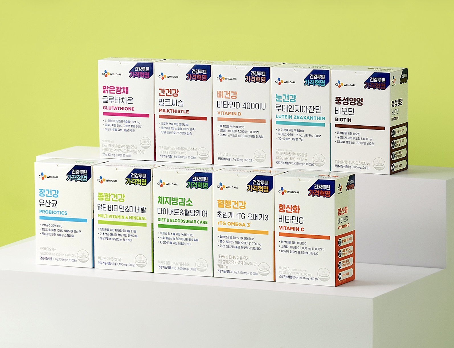제품은 비타민D, 오메가3, 멀티비타민&미네랄, 밀크씨슬, 루테인지아잔틴, 다이어트&혈당케어, 비타민C, 비오틴, 글루타치온, 유산균 등 총 10종으로 구성됐다. 소비자는 자신의 건강 고민에 맞춰 필요한 제품을 선택해 체계적인 웰니스 루틴을 구성할 수 있다.