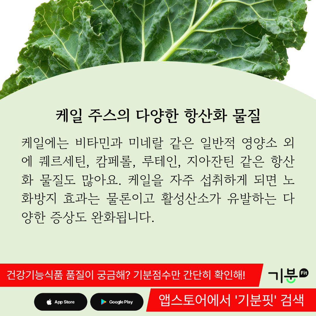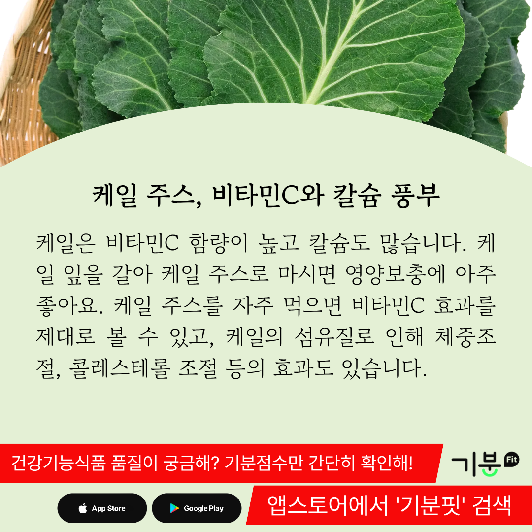 케일을 한 번에 많이 먹기보다는 케일 주스로 만들어 규칙적으로 섭취하자.