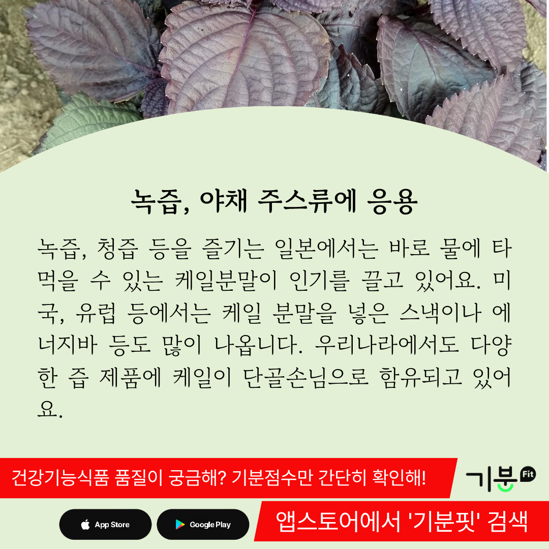 우리나라에서도 다양한 즙 제품이나 야채 주스 제품에 케일이 단골손님으로 함유되고 있다.