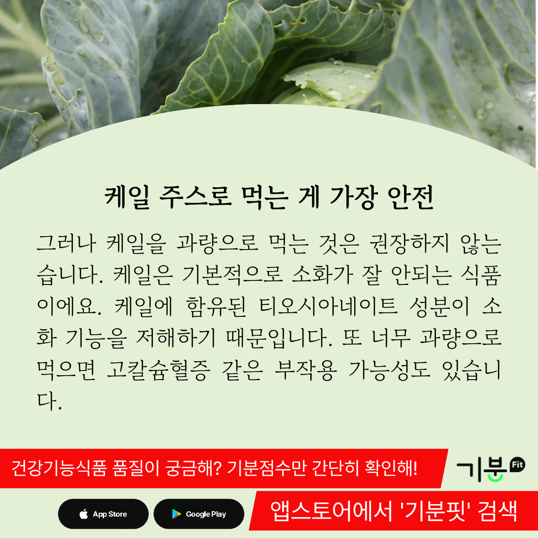 케일에 함유된 티오시아네이트 성분이 소화 기능을 저해할 수도 있다.