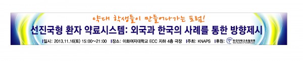 오는 11월 16일 서울 이화여대 ECC극장에서 진행되는 포럼은 '선진국형 환자중심의 약료시스템'을 주제로 외국과 우리나라의 사례를 통해 약료시스템과 실무실습의 방향을 설정하자는데 목적을 뒀다. 특히 선진국형 환자중심의 의사·약사 협력 시스템의 조기 구축을 위한 방안 제시에도 초점을 맞췄다.