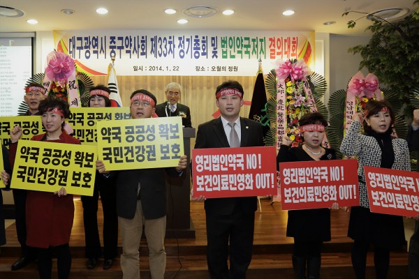 최종성 회장은 인사말을 통해 “영리법인약국의 도입은 거대자본이 약국을 지배하여 약국을 영리추구의 수단으로 전락시키고 국민건강과 골목상권이 무너지는 결과를 초래하게 될 것"이라며 " 약사의 직능은 간 곳 없고 자본에 종속되는 샐러리맨으로 전락할 것이 자명하며, 약사들의 미래도, 생존권 마저도 위협받게 될 것이다”고 지적했다.