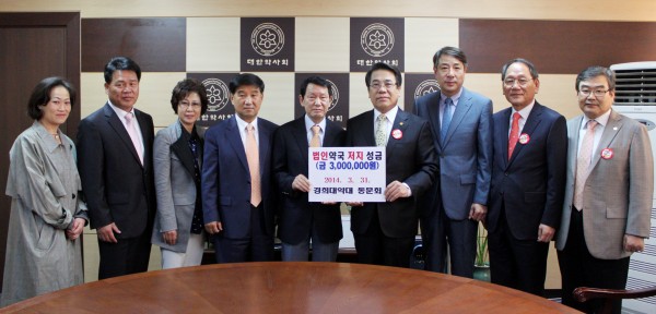 대한약사회(회장 조찬휘)는 지난 3월 31일 경희대약학대학동문회(회장 정종섭)로부터 법인약국 저지 투쟁성금 300만원을 기탁받았다고 밝혔다.