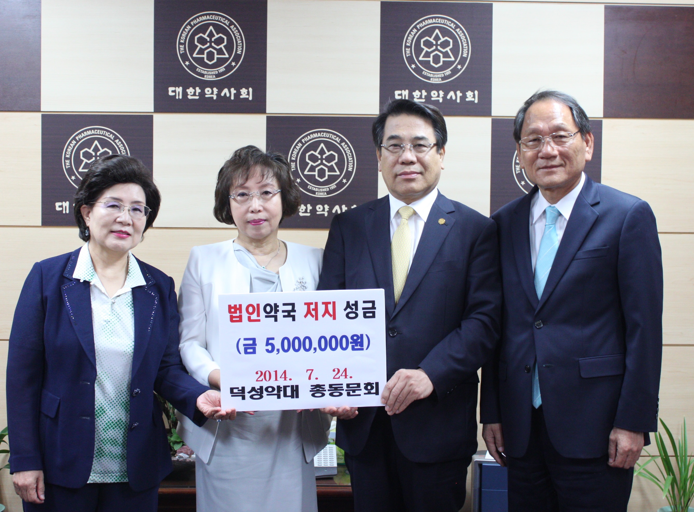 대한약사회(회장 조찬휘)는 덕성여대약학대학 총동문회(회장 임득련)로부터 법인약국 저지 투쟁성금 500만원을 기탁받았다고 24일 밝혔다.