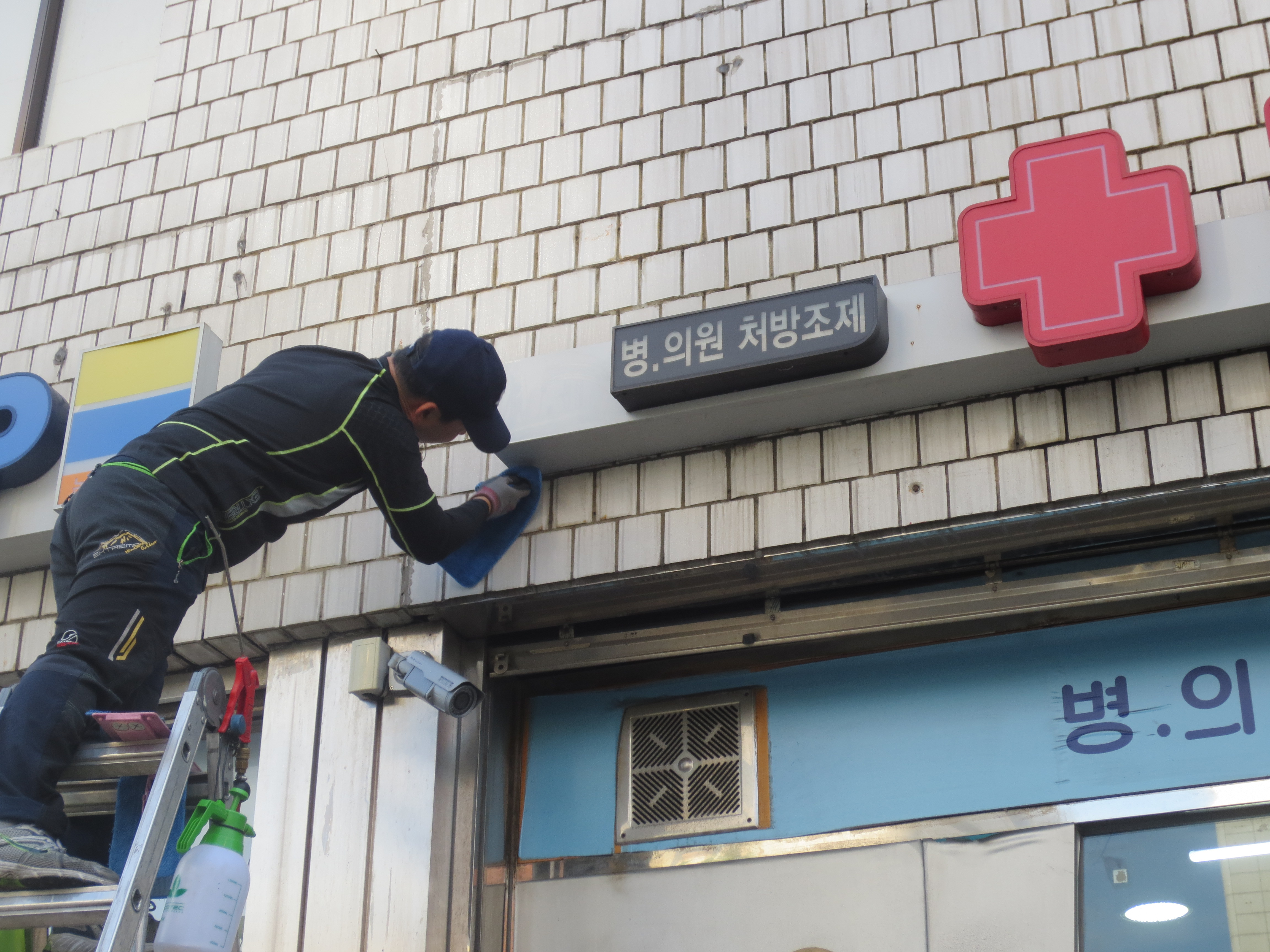 간판과 유리창 청소사업은 약국 업무로 바쁜 회원을 대신해 청소작업을 대행함으로써 깨끗한 약국 환경을 제공해 밝은 약국을 만들자는 취지에서 진행됐다.