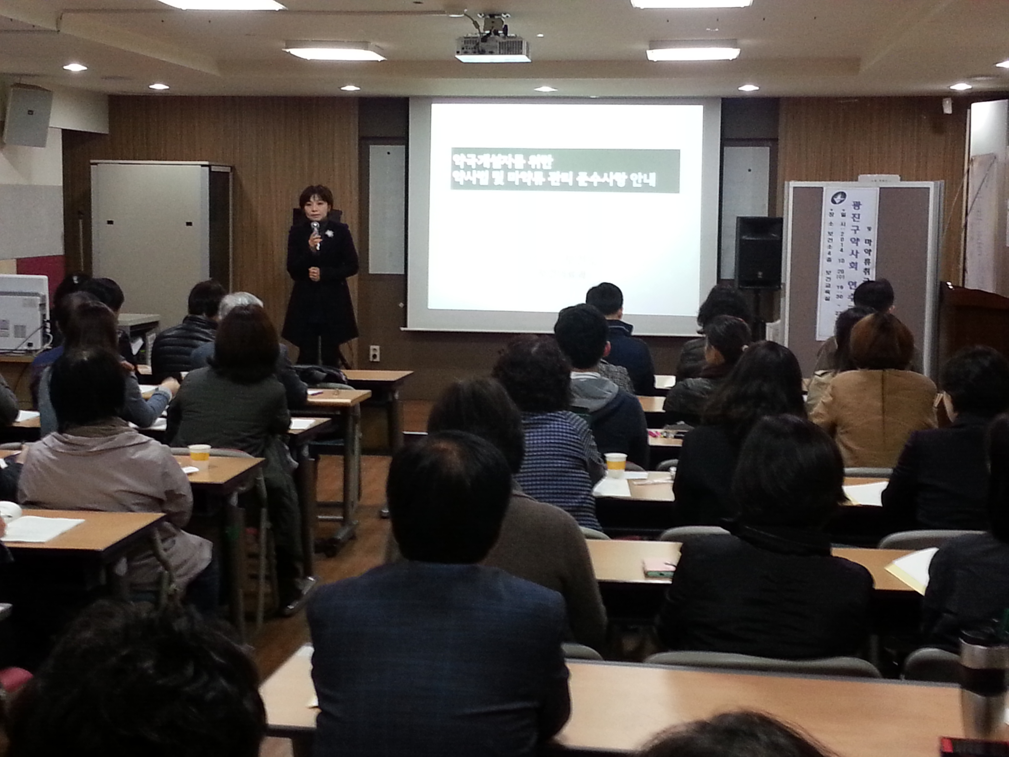 광진구약사회(회장 조영희) 약학위원회(부회장 강현주, 약학이사 김태용)은 지난 10월 29일(수) 광진구보건소 보건교육실에서 "2014년도 제2차 근무약사 및 미이수 개국약사 연수교육"을 실시했다.
